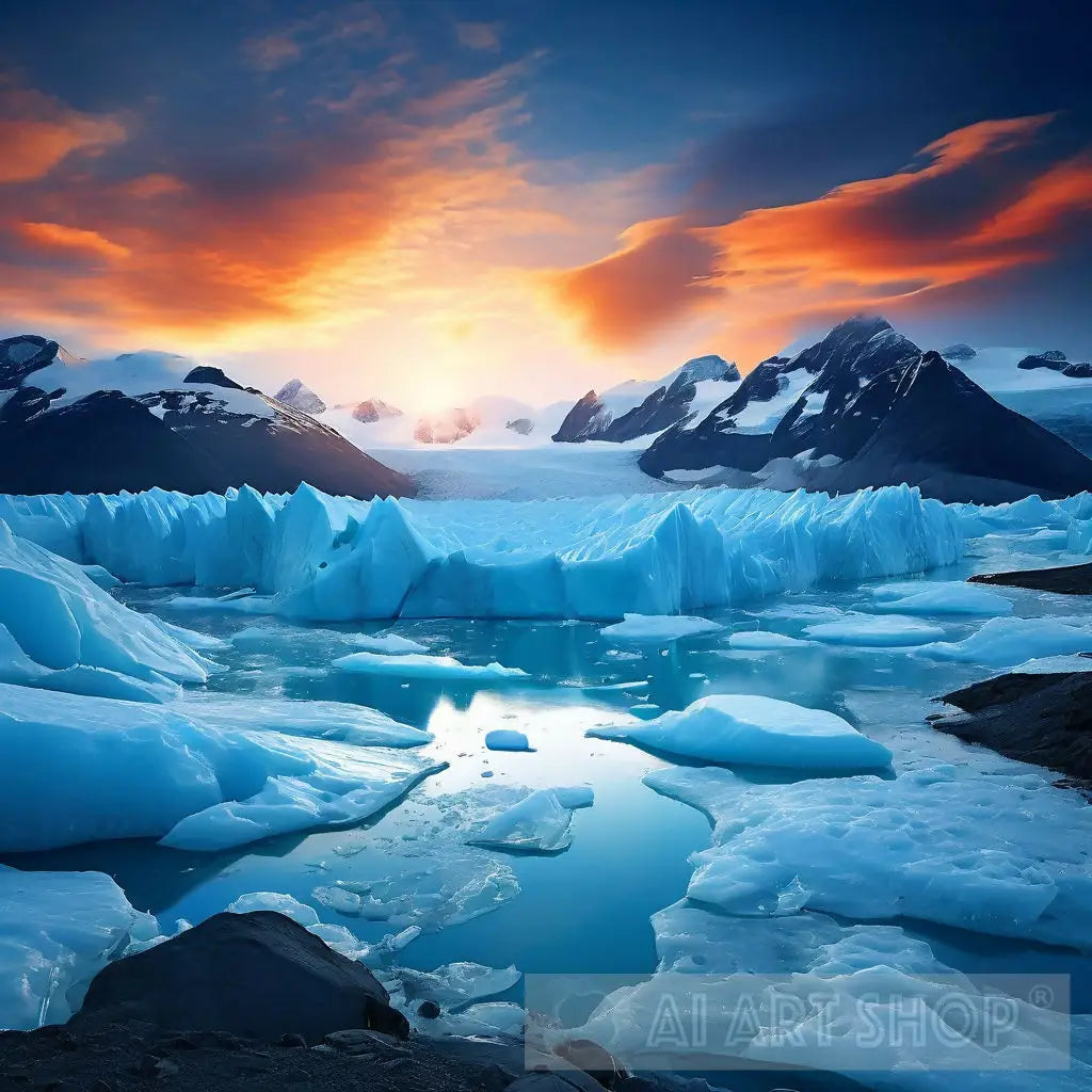Arte feita por IA recriando uma linda paisagem sobre o mundo de gelo, Antártida.