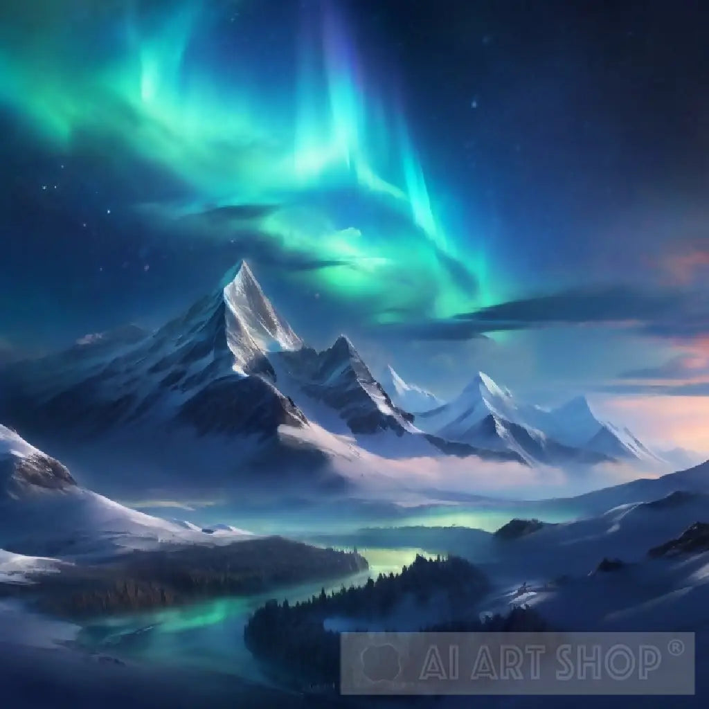 A beautiful aurora showing across a snowy landscape