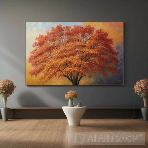 The painting uses artificial intelligence techniques to highlight the beauty of the flowers and their details in a way that makes the viewer feel the warmth and charm of the autumn season. It conveys an atmosphere of joy, warmth, and magic, making it an ideal artistic piece to bring a sense of beauty and vibrancy to any indoor space.