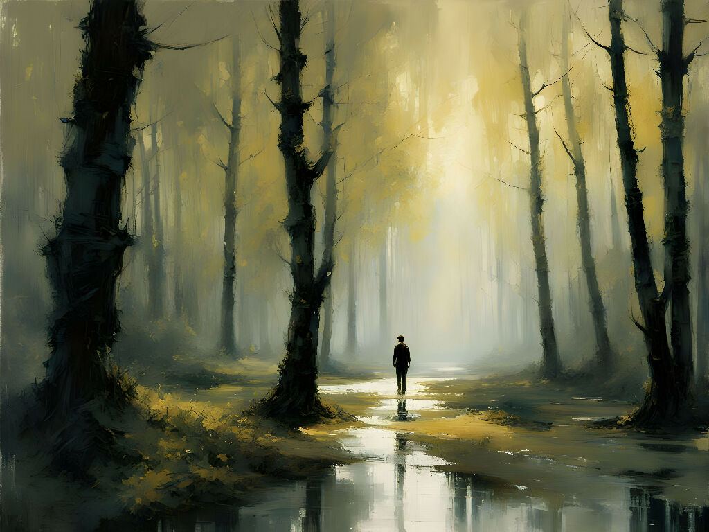 Autumn Birch Landscape. This painting captures the beauty of autumn in a birch forest. The high contrast colors and textured brush strokes create a sense of depth and movement, making it a true work of art.