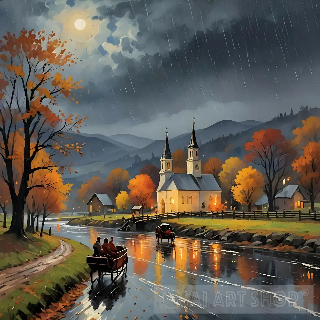 The autumn sky is filled with the Moon and Stars above the Church. Such a peaceful and serene moment.