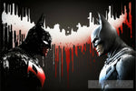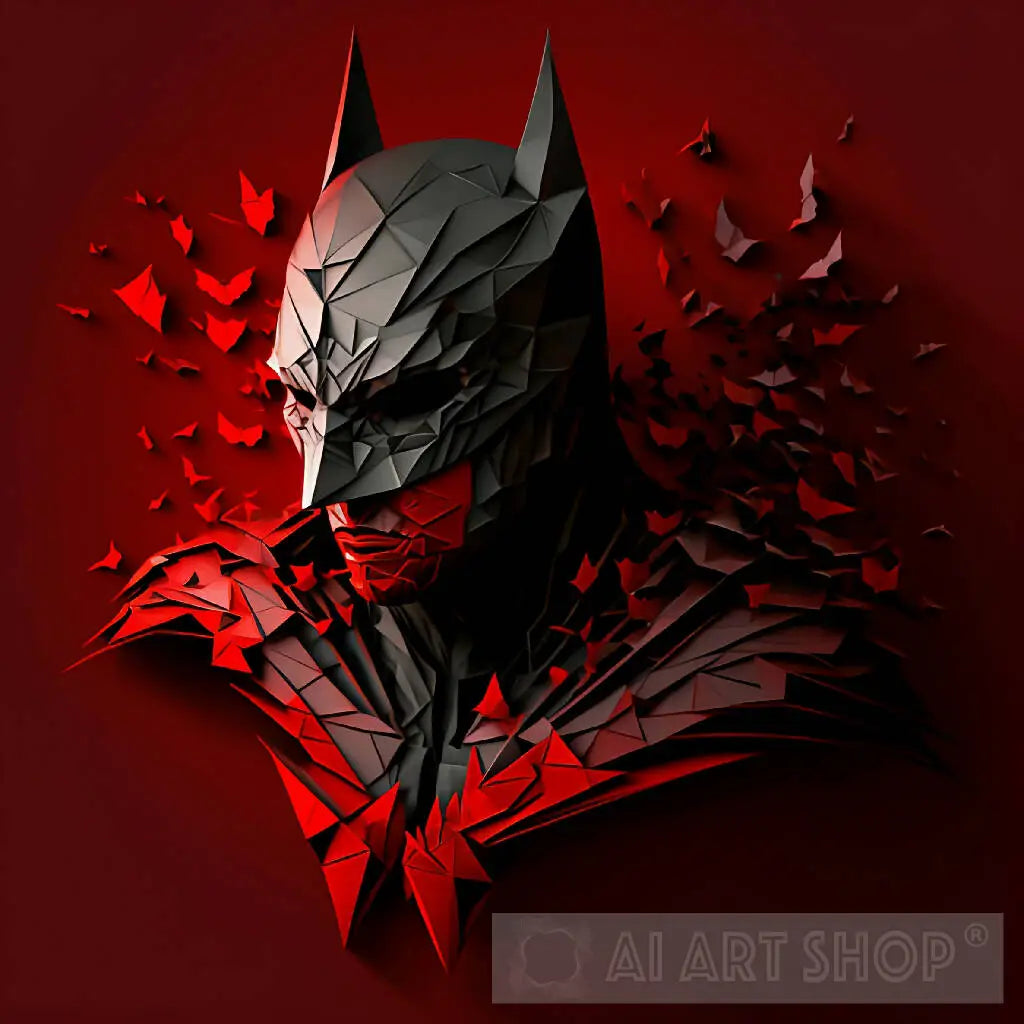 The art work is of batman. The first 2 is a origami vector art style and the last one is a dripping paint art style.