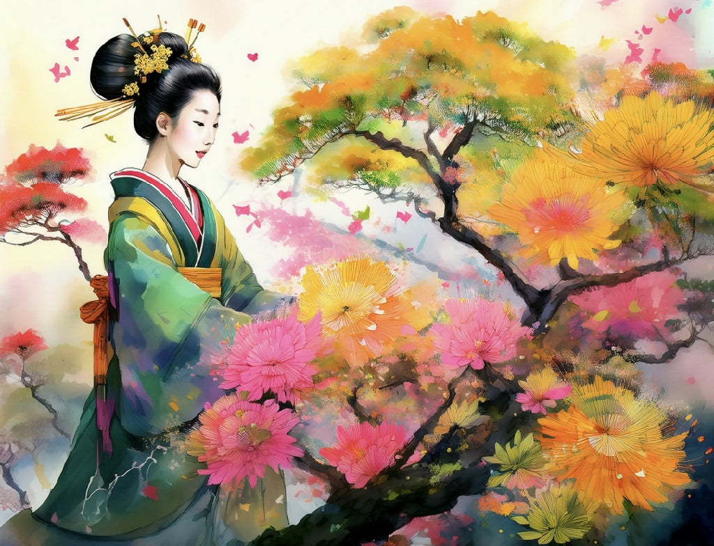This was generated using watercolor technique. It was inspired by vintage Asian works of art.