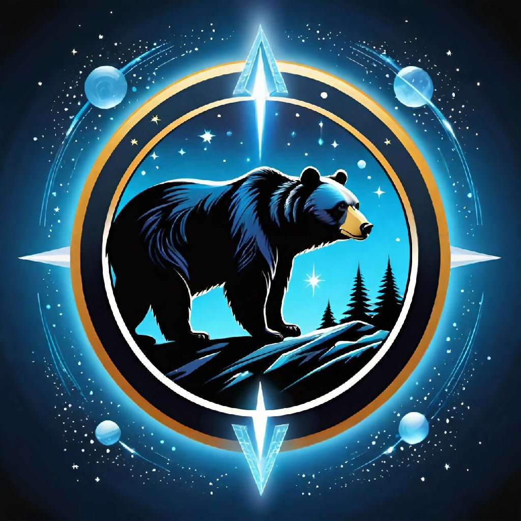 Embrace the majestic wilderness with this stunning AI-generated digital art print. The centerpiece of this artwork features a powerful black bear standing atop a rugged mountain range surrounded by pine trees. A compass design, with cardinal direction arrows, frames the bear, while a celestial backdrop of stars and planets completes the ethereal composition. The vibrant blue hues create a captivating, tranquil atmosphere, making this art print a perfect addition to any nature lover's home or office decor. Available in various sizes and formats to suit your space.