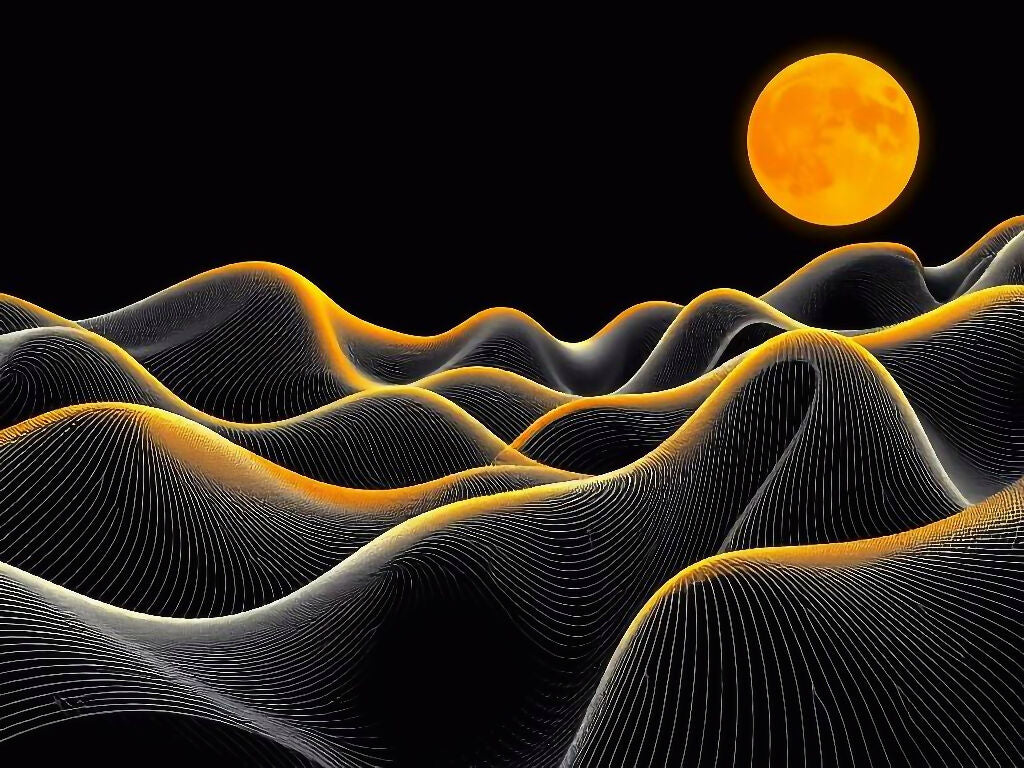 Black Yellow Wave Pattern with Moon