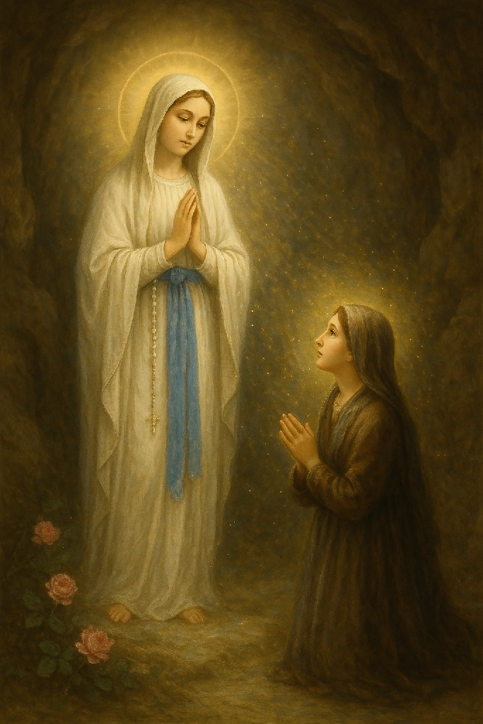A serene artwork depicting a divine encounter, radiating peace, faith, and holiness — a symbol of prayer, grace, and spiritual devotion.