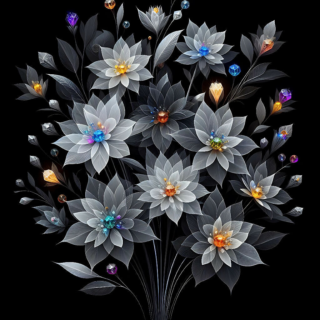 "Bloom in the Dark: A Luminous Bouquet of Crystal Petals"