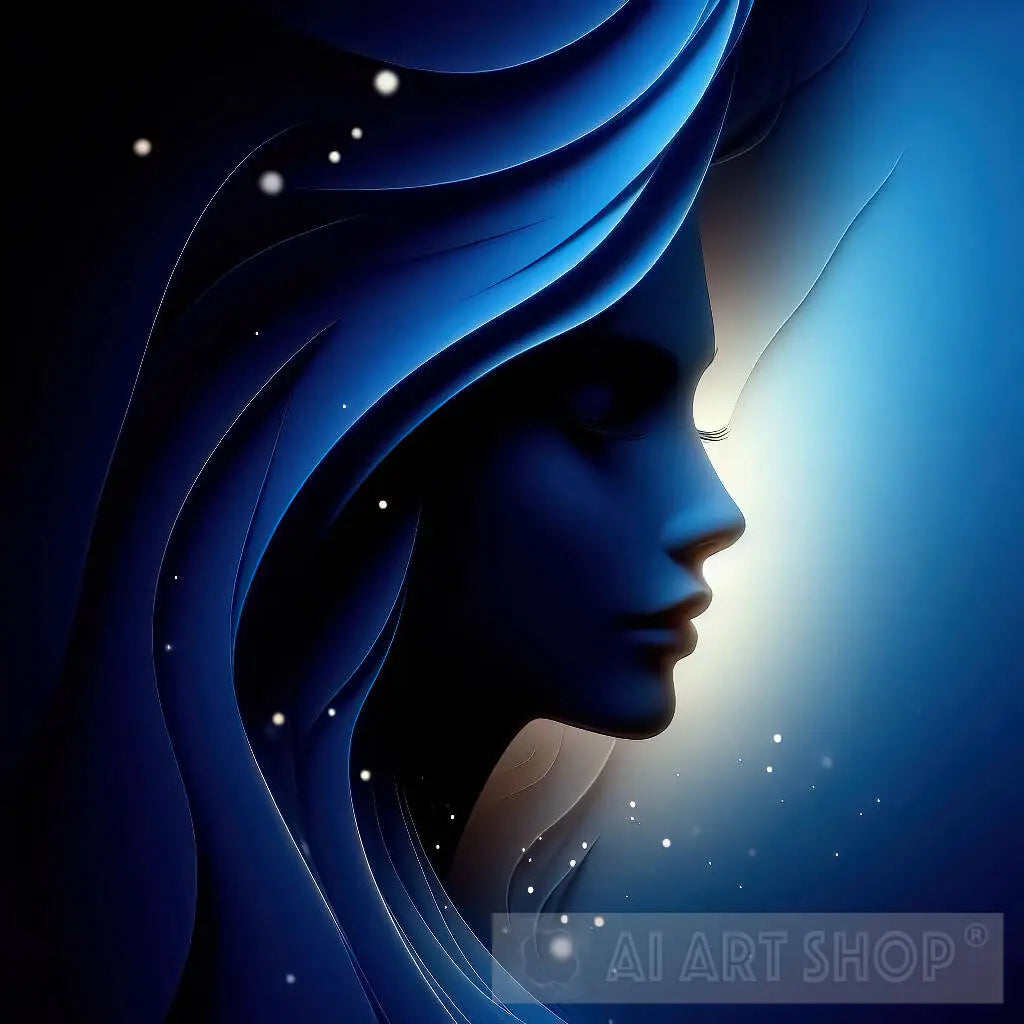 Blue fashion portraits series. Based on AI generated image. It has been edited handily with graphic programs, corrected gross errors, arranged to please the eye.