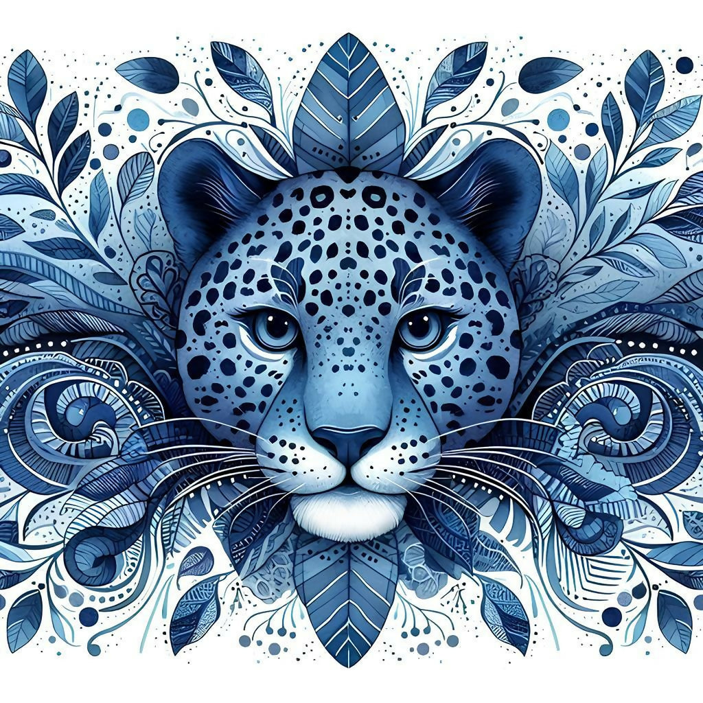 Discover the mystique of the wild with this stunning artistic illustration of a blue jaguar. A fusion of elegance and power, its vibrant hues and surreal tones make it a perfect symbol of strength, beauty, and imagination.