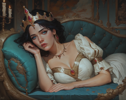 The bored queen always looks for entertaining subjects, but eventualy her blue eyes are bored again...