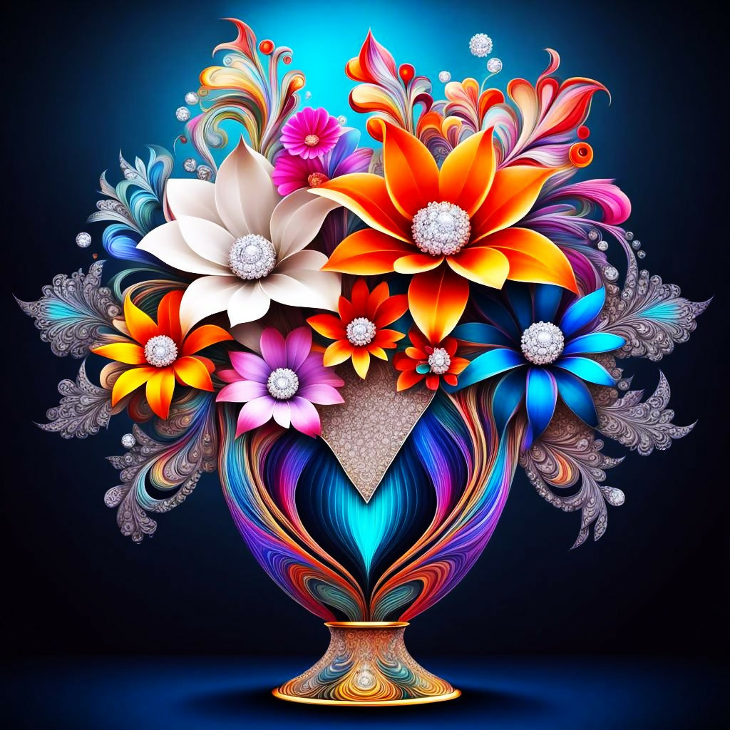 A surreal floral composition where radiant golden blooms intertwine with smooth metallic silver textures, creating an ethereal interplay of elegance and depth. The harmonious contrast enhances the richness of the artwork, making it a captivating addition to luxury interiors and visionary digital collections.