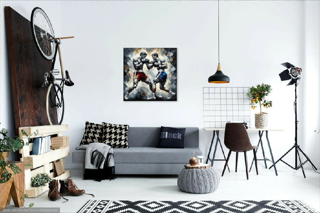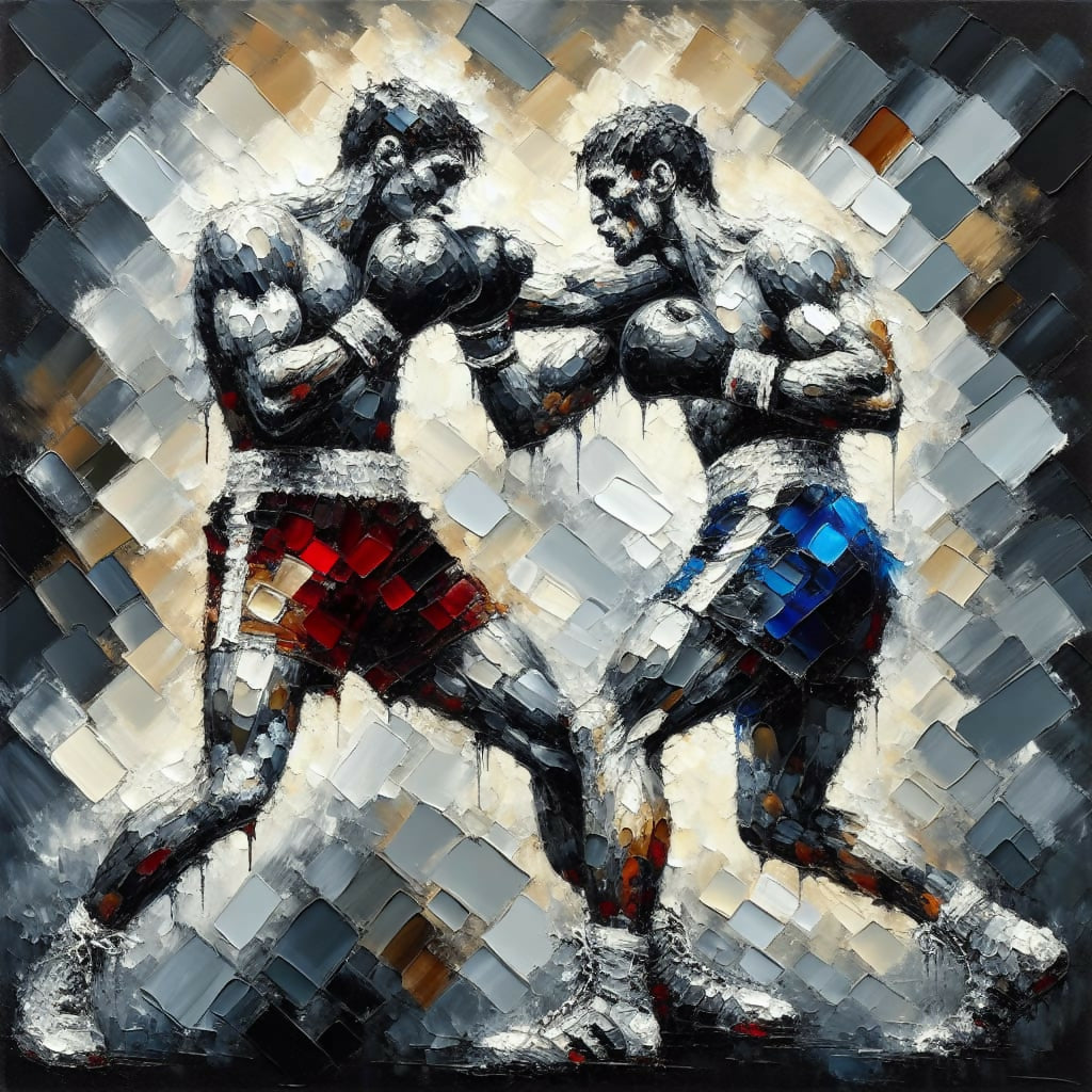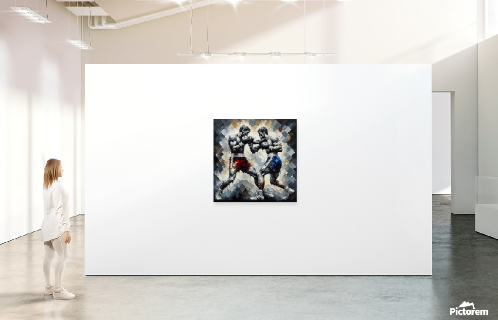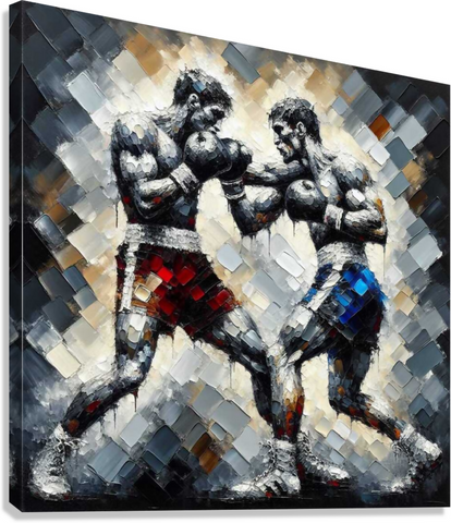 The Painting depicts two athletic individuals engaged in a boxing match.