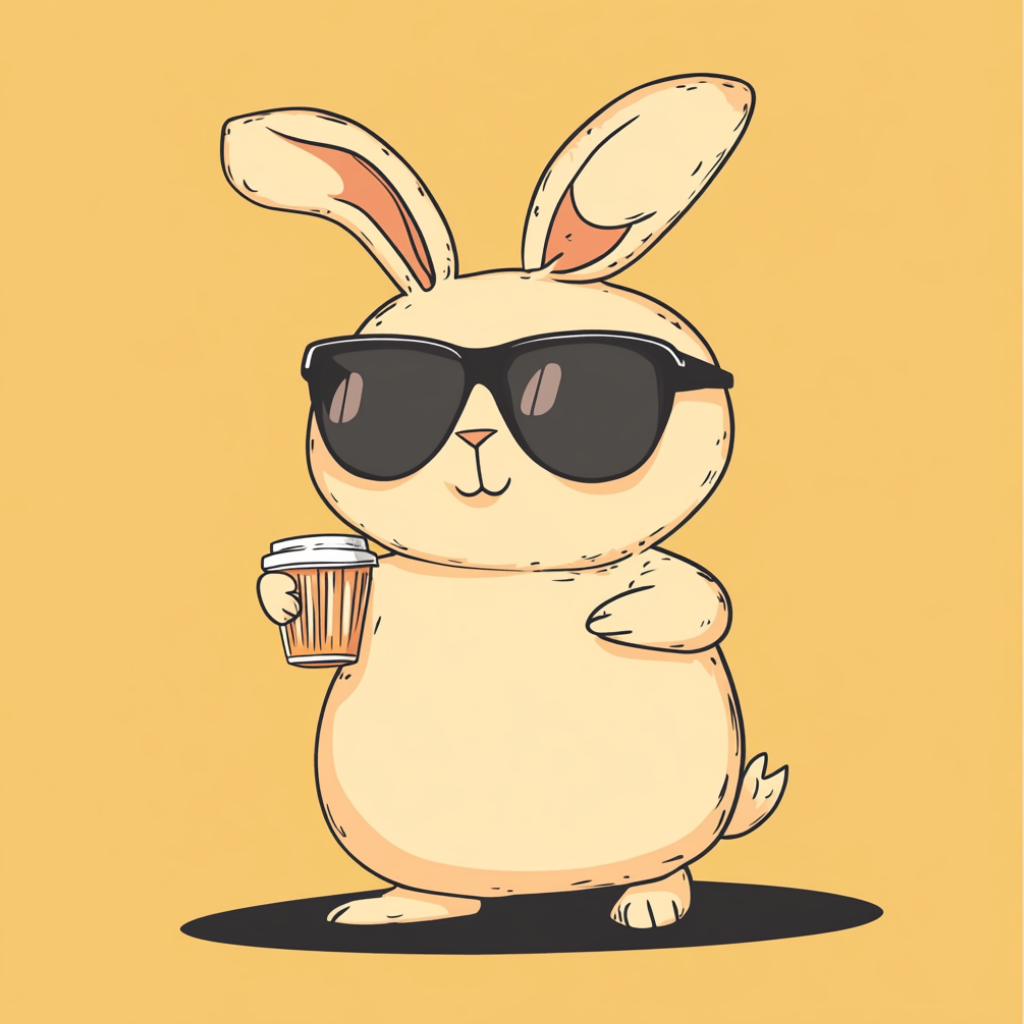 Brew Boss Bunny – Straight No Sugar captures the energy of unapologetic calm. This minimalist bunny stands confident, shades down, coffee up – with an "I run on caffeine & chill" aura. The muted honey-yellow backdrop adds to the retro vibe, making it a stylish fit for kitchens, offices, or as a daily reminder that simplicity rocks.