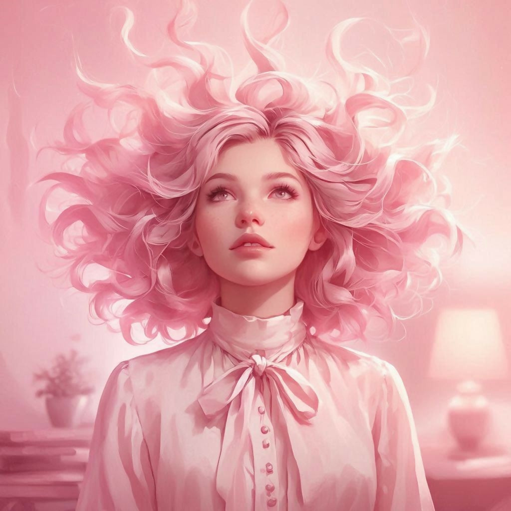 Lose yourself in a dream of pink. Bubblegum Bloom is a mesmerizing monochromatic portrait featuring a girl with ethereal, gravity-defying hair that flows like a field of blooming petals. This piece combines a soft, romantic aesthetic with a touch of the surreal, perfect for fans of Coquette coreDreamcore, and minimalist pastel decor. A stunning statement for phone cases, journals, and wall art.