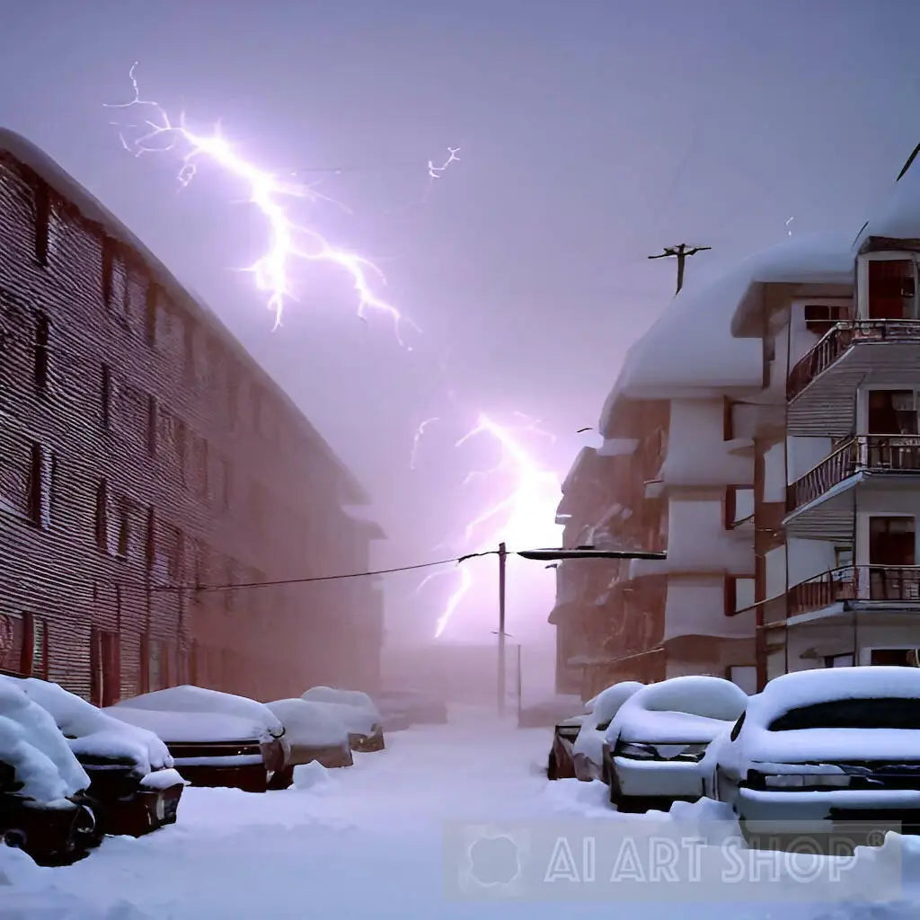 Heavy lake-effect snow, laced with lightning, in Buffalo, NY during the early or mid-winter. Inspired by the 2014 and 2022 November winter storms of Buffalo, NY.