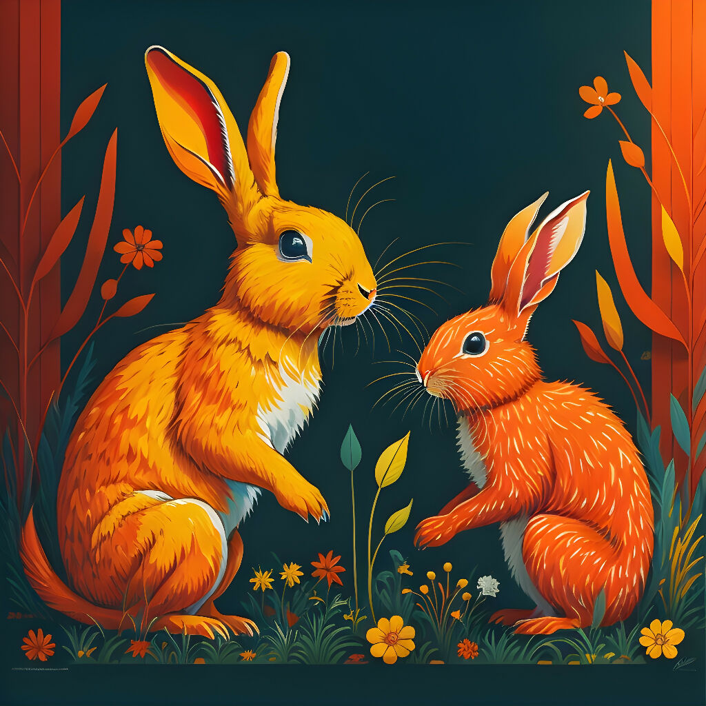 capturing the tender bond between two rabbits amidst a lush meadow. The realism in their soft fur textures and the interplay of light and shadow evoke a sense of peace and warmth. [option two of 'rabbit love']