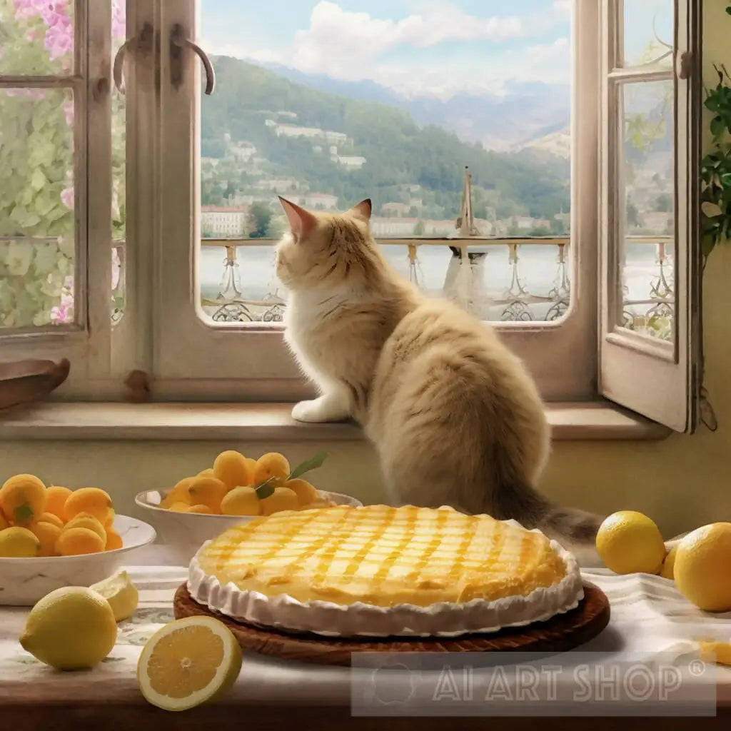 Cat cooking a lemon tart
