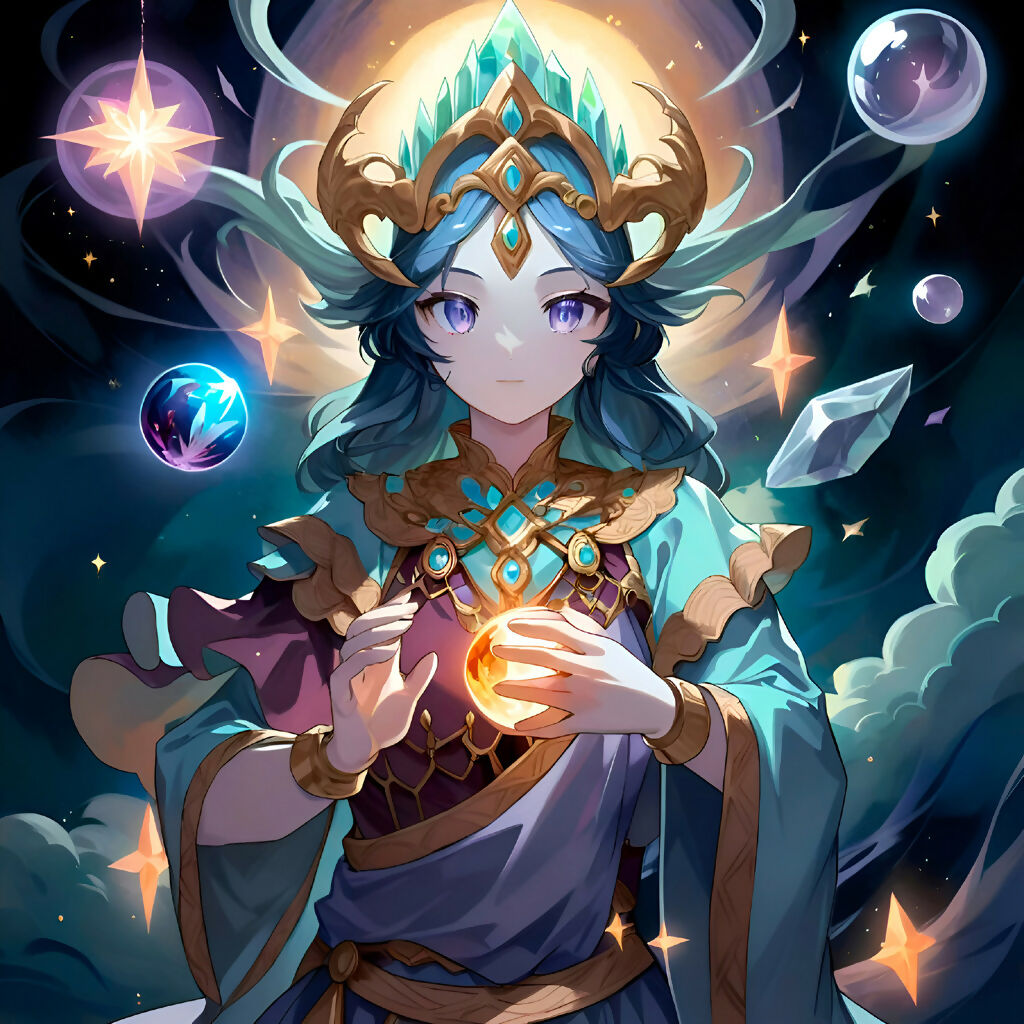 Step into the cosmic dreamscape of the Celestial Empress, a divine guardian of the Crystal Realms. Adorned in shimmering turquoise and gold, her crown channels the energy of distant galaxies while the glowing orb in her hands pulses with ancient magic. Her flowing teal hair dances with stardust as she watches over the balance of light and shadow across the universe. This surreal AI-generated artwork blends fantasy, mysticism, and regal elegance—perfect for collectors who crave visual storytelling and ethereal beauty.