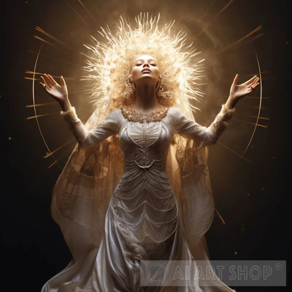 "Celestial Genesis" captures the divine moment as the goddess delicately shapes the moon with her hands. The image radiates a sense of creative power and celestial wonder. The goddess, in a cosmic act of creation, becomes the architect of the moon, infusing the scene with a sense of majesty and mysticism. This artwork invites viewers to witness the celestial ballet between the divine and the cosmic, a harmonious dance of creation.