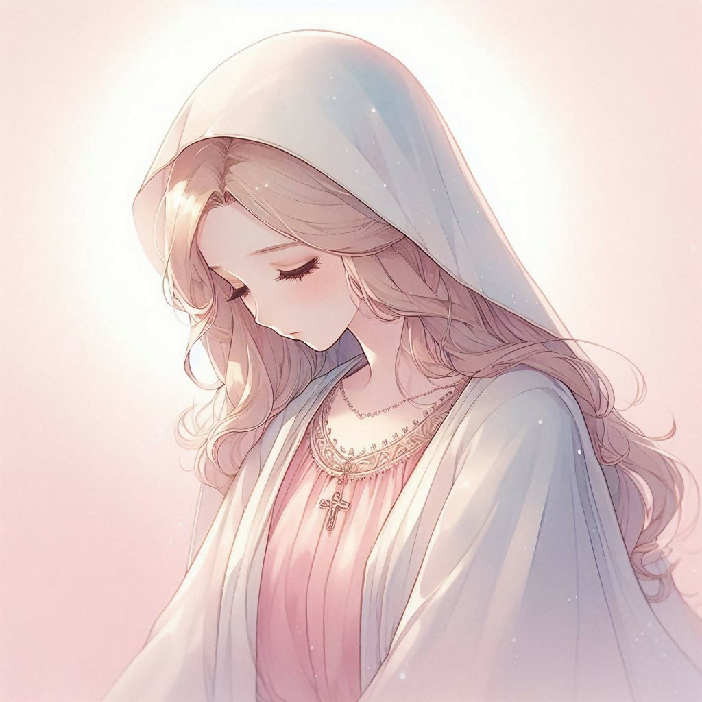 "Celestial Maiden" is a breathtaking fusion of traditional sacred iconography and contemporary anime artistry. This ethereal portrait captures a moment of quiet grace and divine serenity, bathed in a soft, golden glow. Featuring delicate line work, flowing pastel robes, and a radiant halo of light, this piece reimagines the classic Madonna figure with a gentle, modern elegance.