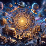 Embark on a cosmic journey that intertwines human intellect with the vastness of the universe. “Celestial Mechanics” captures the essence of scholarly pursuit amidst golden astrolabes and celestial bodies. Imagine ancient scholars, clad in classical attire, huddled around telescopes and globes, their minds reaching for the stars. This art print pays homage to humanity’s timeless fascination with the cosmos—a quest that transcends time and space.