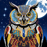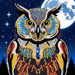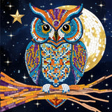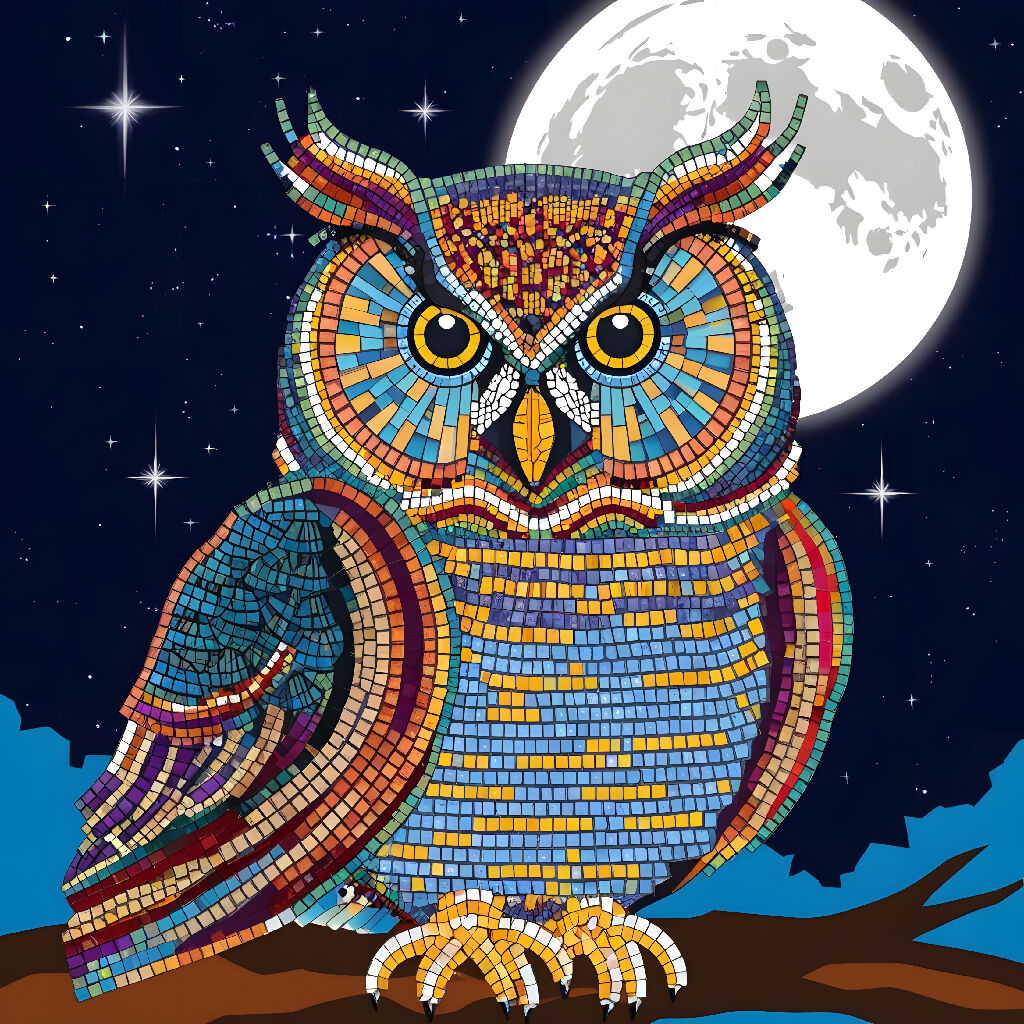 Celestial Mosaic Owl: A Colorful Tribute Under the Moonlight