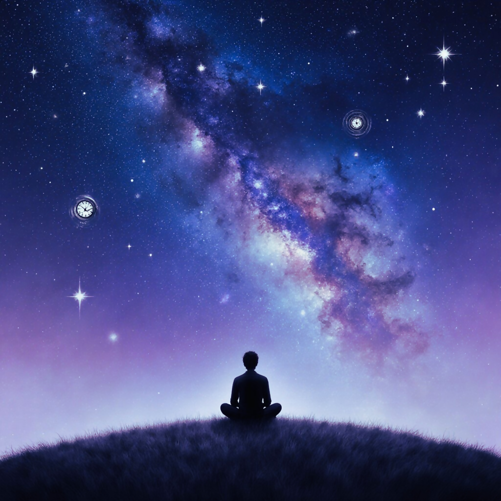 Celestial Quietude captures the vast silence of the universe, inviting stillness and humility. A lone figure sits in meditation beneath an infinite night sky, galaxies and nebulae spilling across the heavens in hues of lavender, deep blue, and silver. This surreal digital painting by The Future of Art merges cosmic wonder with inner peace, a reminder of both our smallness and our connection to the infinite.