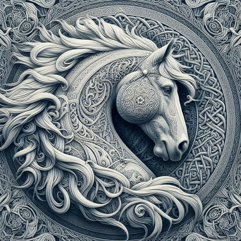 Tags: Horse, Celtic, Knotwork, Equine, Ornamental, Monochrome, Line Art, Mythical, Tribal, Elegant, Symbolic, Decorative, Animal, Heritage, Spirals
