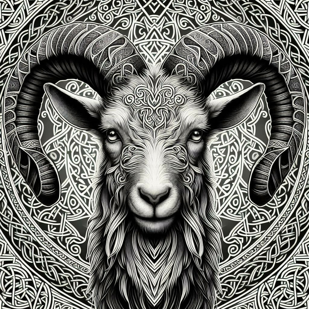 Tags: Ram, Celtic, Horns, Tribal, Mythical, Animal, Symbolic, Ornamental, Line Art, Black and White, Strength, Heritage, Decorative, Spiritual, Ancient