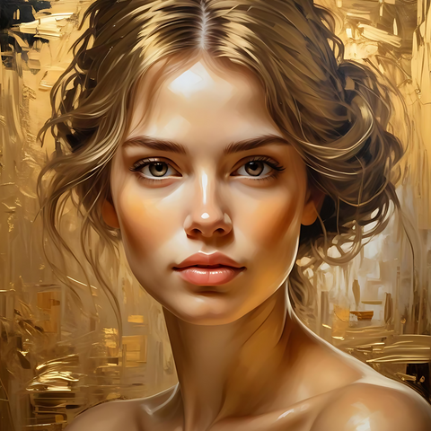 Discover the elegance and allure of this stunning oil painting featuring a charming woman adorned with luxurious gold foil accents.