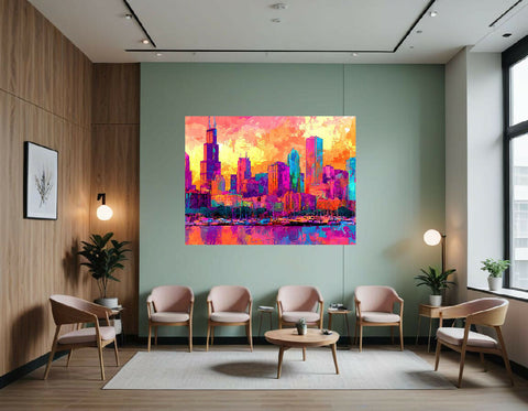Overall, the painting captures the bustling spirit and architectural grandeur of Chicago, transforming its familiar skyline into a celebration of color, light, and modern artistic expression.