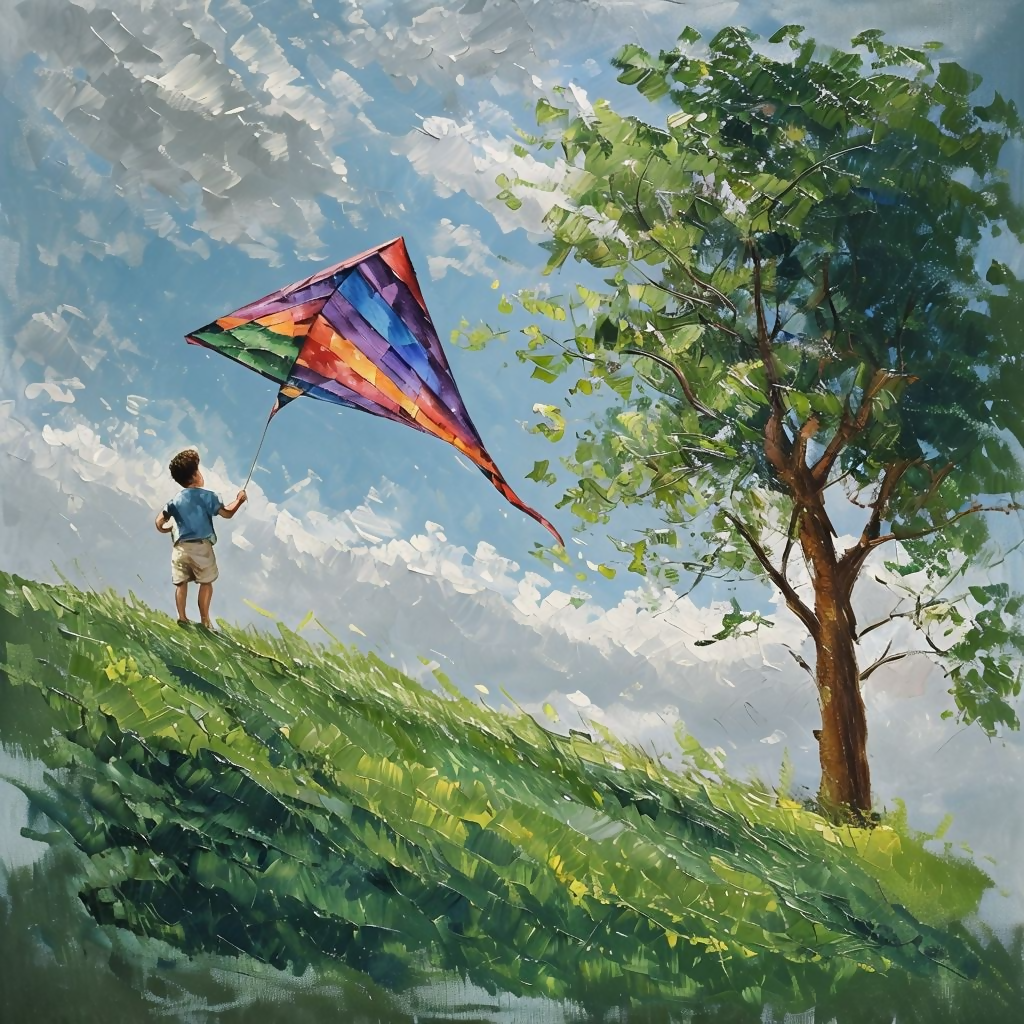 Childhood Dreams: Boy Flying Kite Digital Art Print