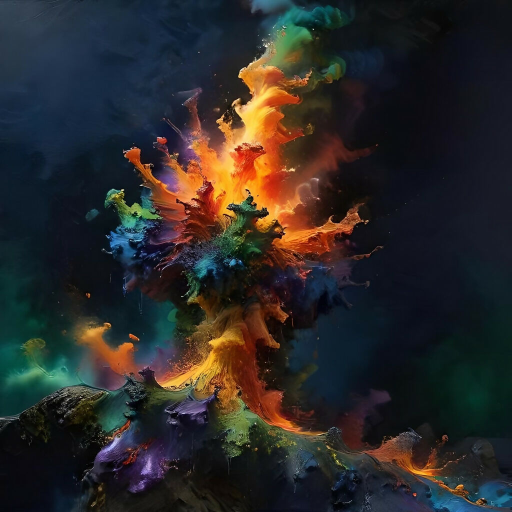 A mesmerizing burst of color explodes across the canvas, blending fiery reds, electric blues, radiant yellows, and deep purples in a dynamic dance of texture and motion. This abstract composition captures the raw energy of creation—like a cosmic celebration frozen in time. Perfect for modern interiors or digital galleries, it evokes emotion, movement, and the boundless possibilities of artistic expression.