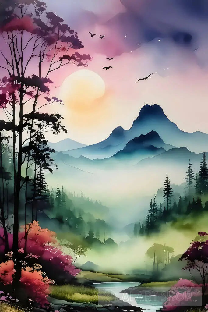 Chromazon    sunset, sky, sun, landscape, mountain, sunrise, tree, clouds, nature, cloud, trees, mountains
