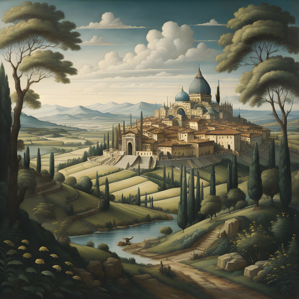 The artwork captures the picturesque charm of the European Czech river city with its historic architecture and scenic riverbanks.