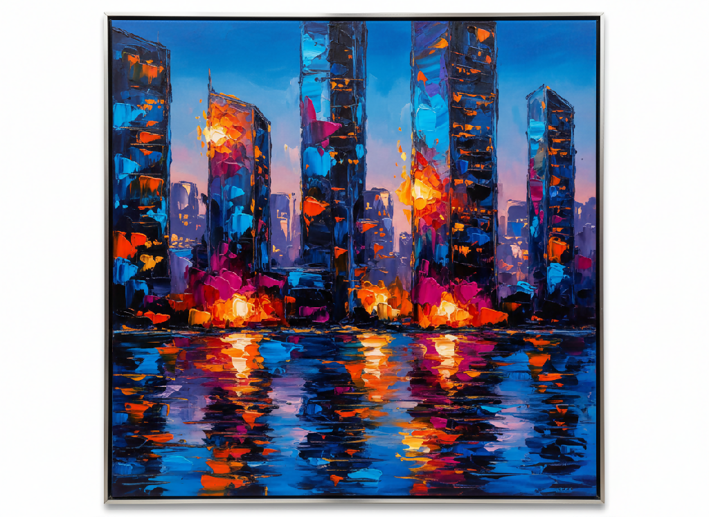 This modern abstract composition evokes the beauty of cityscapes at dusk, blending architectural form with emotional atmosphere. Perfect for contemporary interiors, creative workspaces, and collectors of urban-inspired art, City of Echoes brings metropolitan magic to any wall.