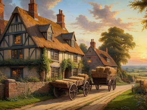 Vintage Country Oil Painting Antique Wall Art Printable Fall Countryside Landscape Digital Download Rustic Print Autumn Serene Landscape
