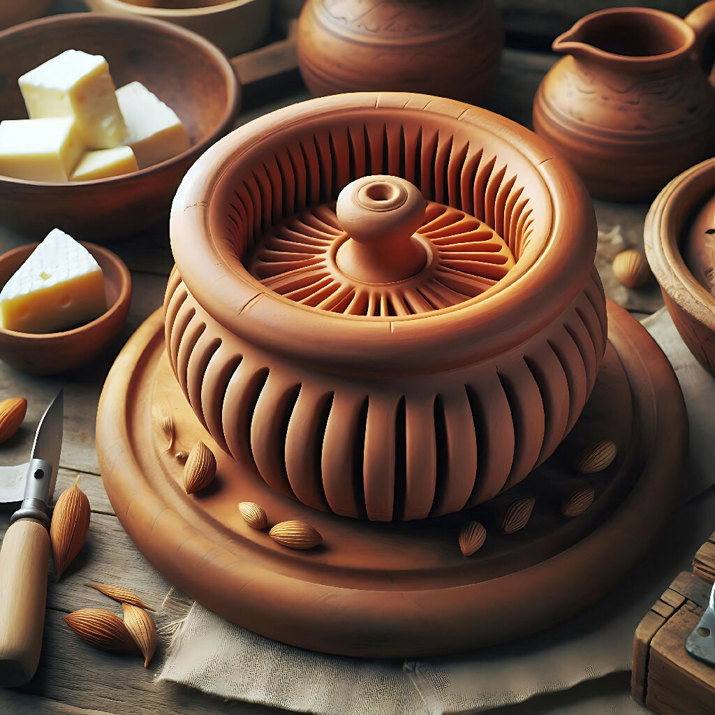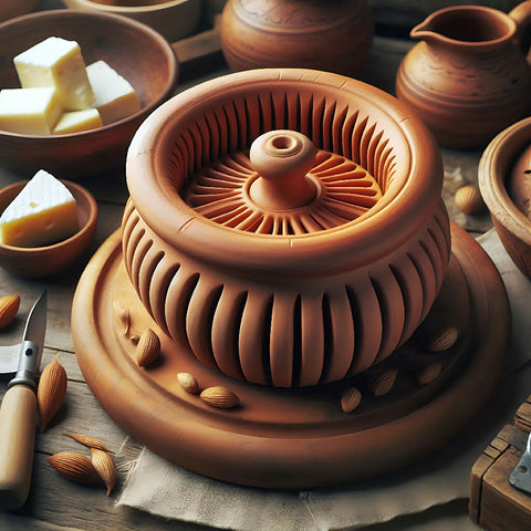 Clay Cheese Mold A traditionally handcrafted mold made from natural clay, ideal for shaping and straining fresh cheeses like ricotta or labneh. Its porous texture allows gentle draining, while its organic form adds a rustic touch to any artisanal kitchen. Perfect for small-batch cheesemaking with timeless charm.