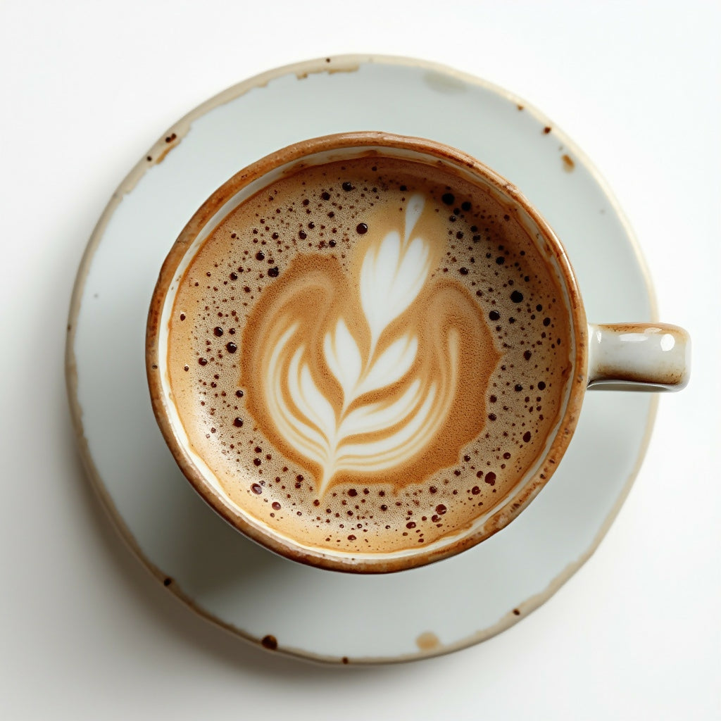 This artwork offers a bird's-eye view of a freshly brewed cup of coffee, showcasing the rich, dark tones of the brew contrasted against the creamy swirls of milk art. The circular shape of the cup, resting on a simple, textured surface—perhaps wood or stone—adds a sense of warmth and comfort. The subtle steam rising from the coffee evokes the inviting aroma of a perfect cup, while the minimalistic composition highlights the beauty in everyday rituals. Perfect for coffee lovers, this piece celebrates the art and simplicity of a cherished moment.