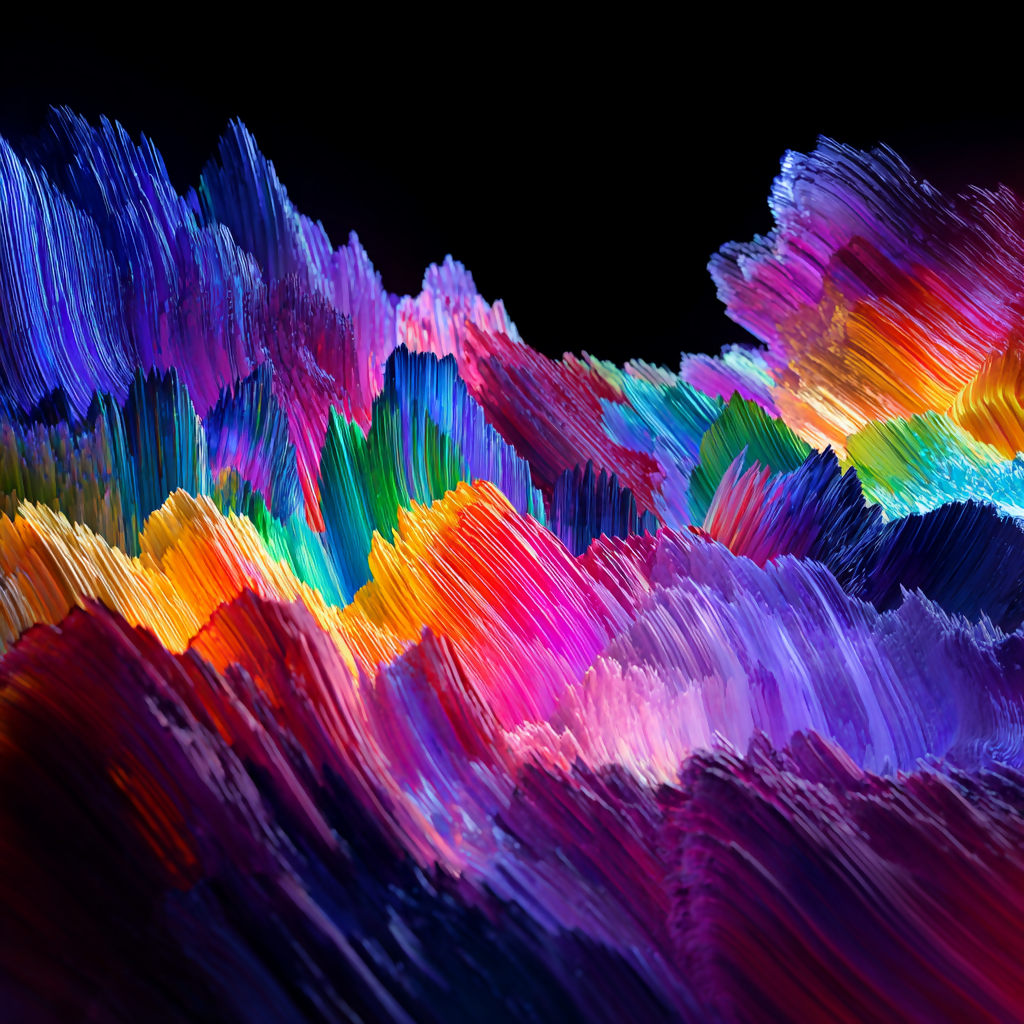 Tags: abstract, digital art, color explosion, 3D texture, visual surrealism, generative art, geometric chaos, digital brushstrokes, imaginary landscape, contemporary art