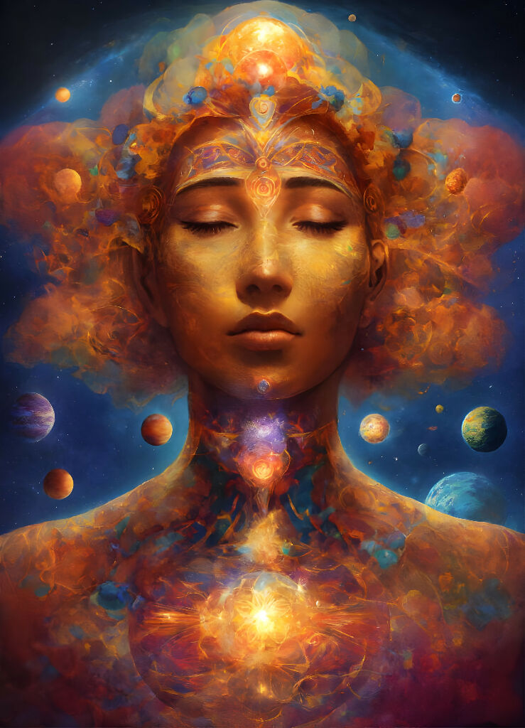 cosmic consciousness in space meditating. surreal entity divine force of nature.