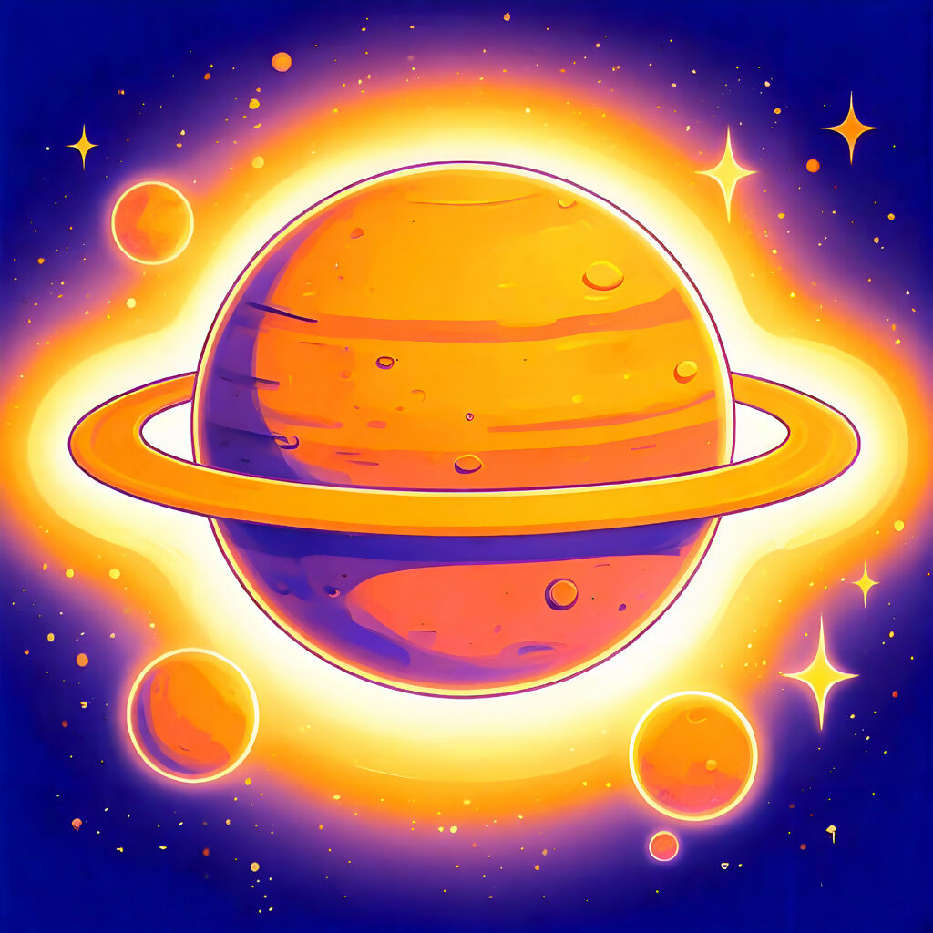 Immerse yourself in the mesmerizing beauty of the cosmos with Cosmic Radiance: Saturn's Glow. This stunning AI-generated artwork captures the ethereal essence of Saturn, showcasing its iconic rings and vibrant colors. The planet is bathed in a radiant halo of light, surrounded by smaller celestial bodies and twinkling stars. The deep blue background contrasts beautifully with the warm, glowing hues of Saturn, creating a captivating visual experience. Perfect for space enthusiasts and art lovers alike, this piece brings the wonders of the universe into your home.