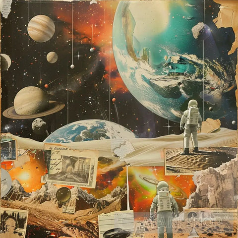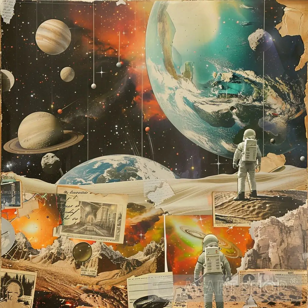 and celestial events are layered and juxtaposed with vintage ephemera and handwritten notes,