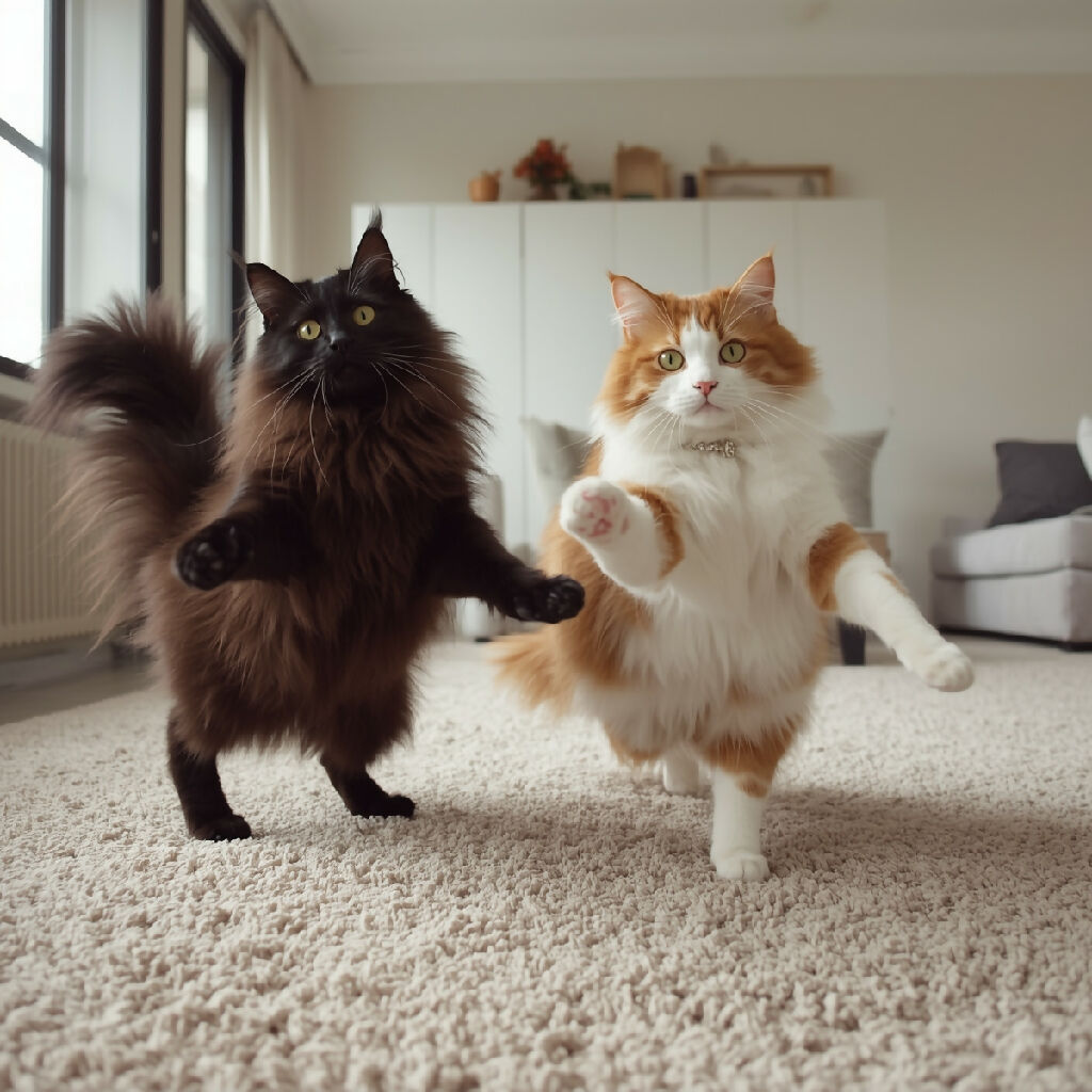 Create a video of two mainecoon cats