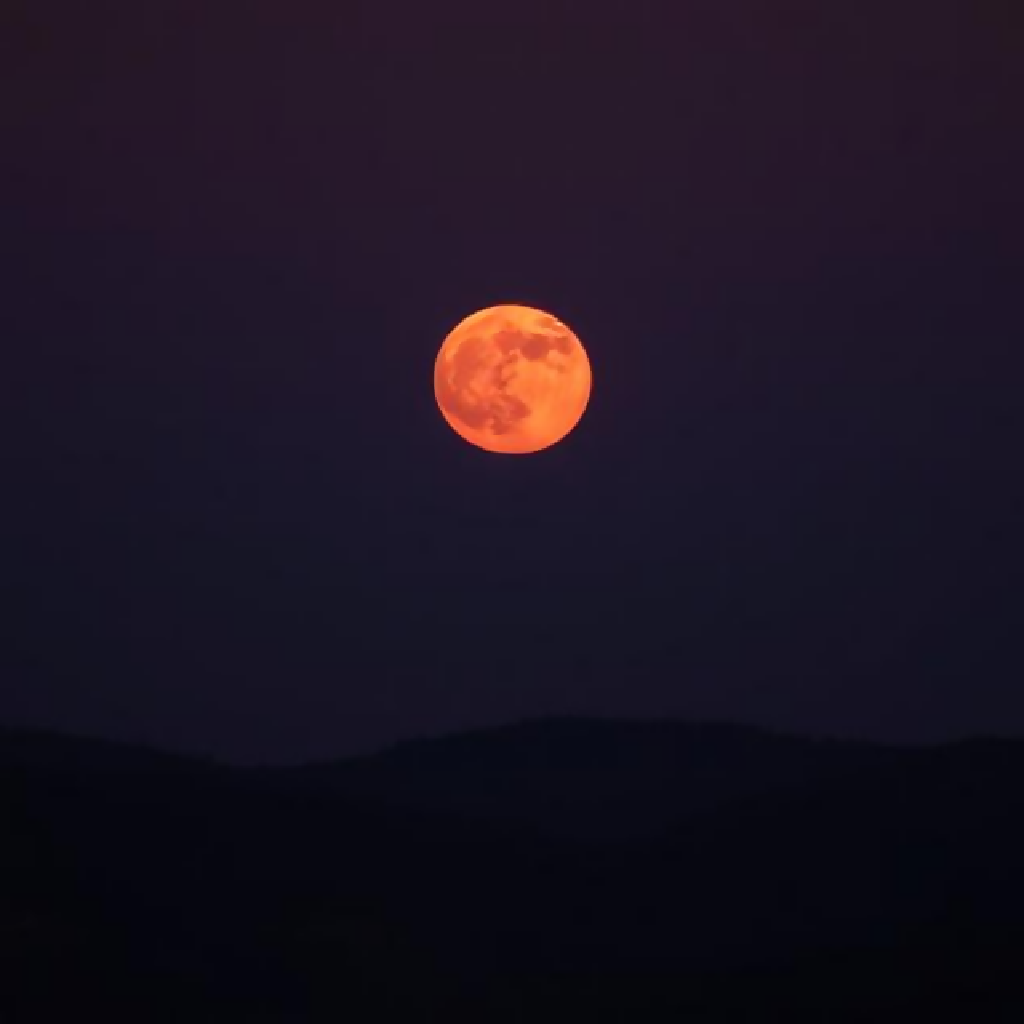 This captivating artwork depicts a blood moon rising dramatically over the silhouette of rolling hills, bathed in the deep hues of twilight. The moon’s rich crimson glow contrasts strikingly against the fading blues and purples of the evening sky, while the darkened hills create a bold, minimalist foreground. The scene captures the mystical beauty of this celestial moment, blending natural wonder with a touch of surreal atmosphere. Perfect for lovers of nightscapes and cosmic art, this piece brings the haunting elegance of a blood moon into any space.