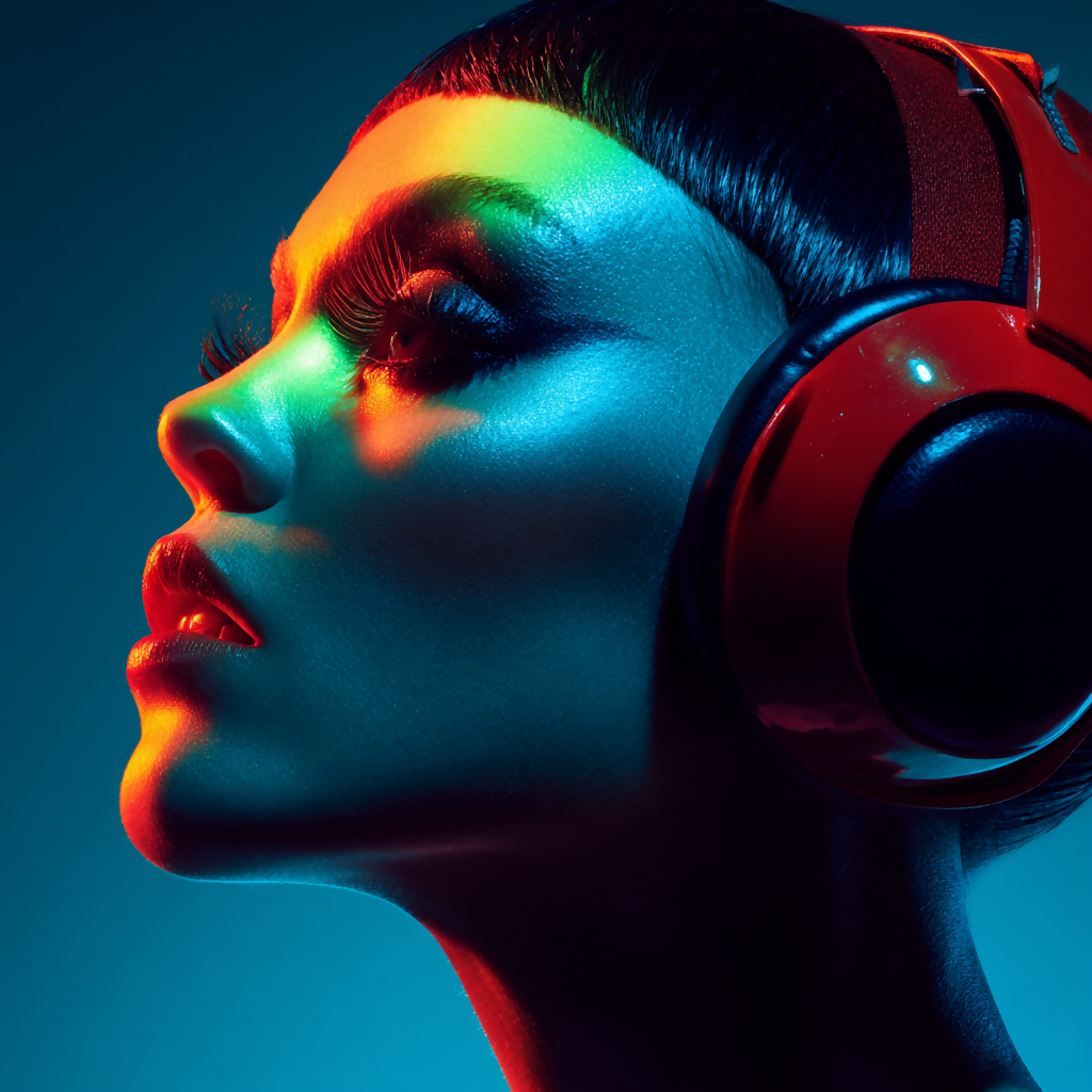 Tags: Headphones, Red Headphones, Minimalism, Music Portrait, Contrast Colors, Audio Style, Modern Design