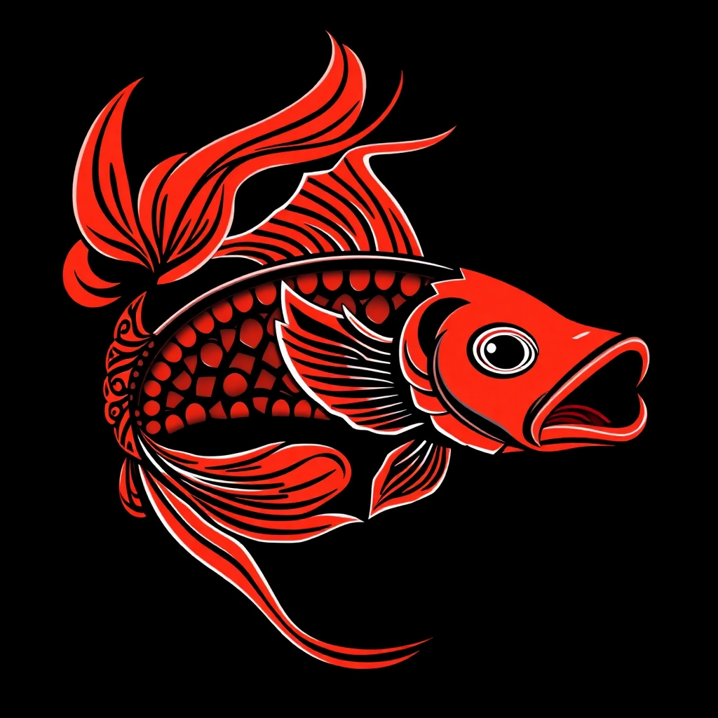 This stunning close-up captures a vibrant red Siamese fighting fish (Betta splendens) in all its glory. The fish is showcased against a dramatic black background, which makes its rich crimson hues truly pop. Its fins are exquisitely flowing and expansive, creating a breathtaking, almost veil-like display around its body. Every delicate ray and subtle undulation of its fins is sharply defined, highlighting the natural artistry of this magnificent aquatic creature. The image emphasizes the fish's elegant movement and intense coloration, transforming it into a living work of art.