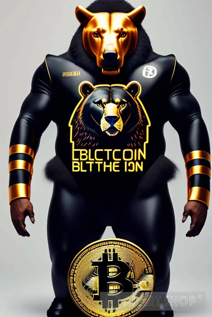 Cryptobear  is a theme that revolves around the figure of a bull beer, wearing an outfit with the Bitcoin logo and surrounded by various coins in a futuristic setting.