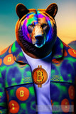 But make no mistake, this bull is not a simple animal, he is the Crypto Bull,Cryptobear  a mythical being that represents the power and strength of cryptocurrencies. With his elegant clothes and vibrant colors, he is the symbol of the crypto community, always ready to fight for the ideals of decentralization and financial freedom.