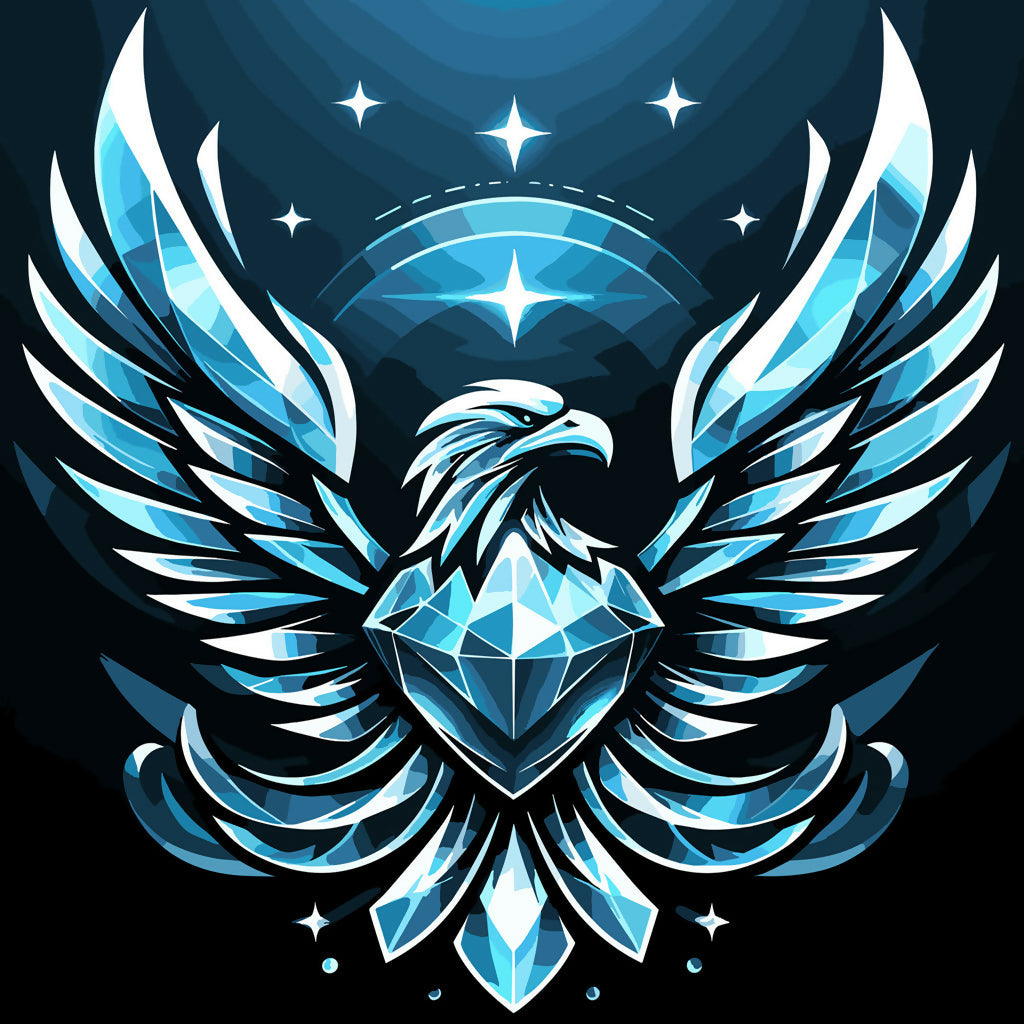 Introducing the Crystal Eagle Emblem, a breathtaking fusion of nature and elegance. This digital masterpiece showcases a majestic eagle, its wings spread wide, crafted entirely from shimmering blue and white crystal facets. Set against a celestial backdrop, the emblem radiates power and sophistication, making it perfect for branding, logos, and decorative designs. Whether you're looking to enhance your visual identity or add a touch of brilliance to your collection, this emblem is a striking choice.